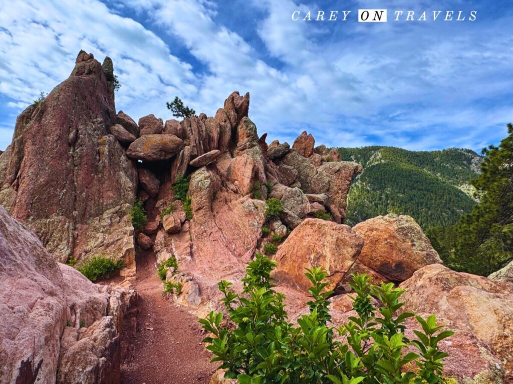 This shady forested trail following a creek in Fourmile Canyon is one of our favorite hot weather trails. It’s best in late spring for wildflowers, in the summer heat, and during fall foliage season. This is a dirt trail with lots of creek crossings and a very gradual incline. It is not ideal for those with mobility issues, due to the uneven terrain,